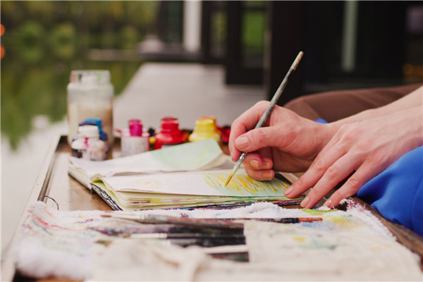 “四季大使”Missy在湖边创作绘画